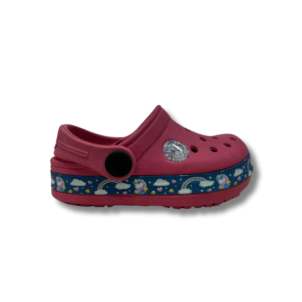 Diseñado para los niños que aman los unicornios y los mundos de ensueño, este zueco combina la comodidad y practicidad con un diseño adorable que hará volar su imaginación. Su vibrante color se complementa con ilustraciones mágicas de unicornios, arcoíris, nubes y estrellas, convirtiendo cada paso en una aventura llena de alegría.