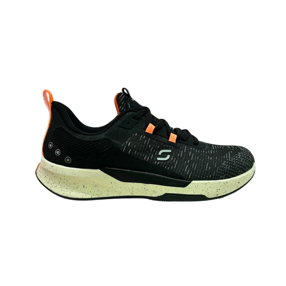 En un audaz color negro con detalles vibrantes en naranja, estas zapatillas te harán destacar tanto en tus entrenamientos como en tu día a día.